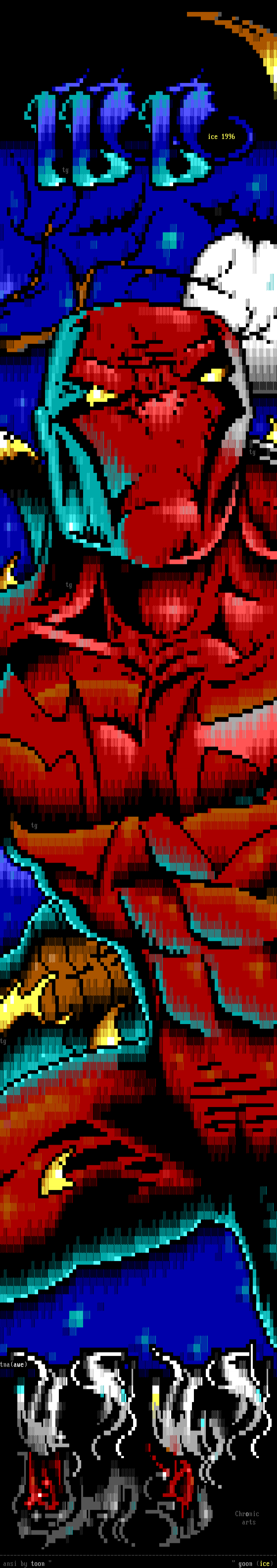 this will be my final ansi kids. at least i think tgicetgi .im going out withha bang :. anyways greets to everyone in ice.. hal, grimlock, iodine etc. check out my website at