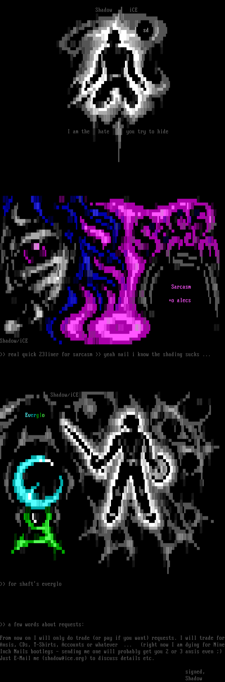 From now on I will only do trade or pay if you want requests. I will trade forAnsis, CDs, T-Shirts, Accounts or whatever ... right now I am dying for NineInch Nails bootlegs - sending me one will probably get you 2 or 3 ansis even