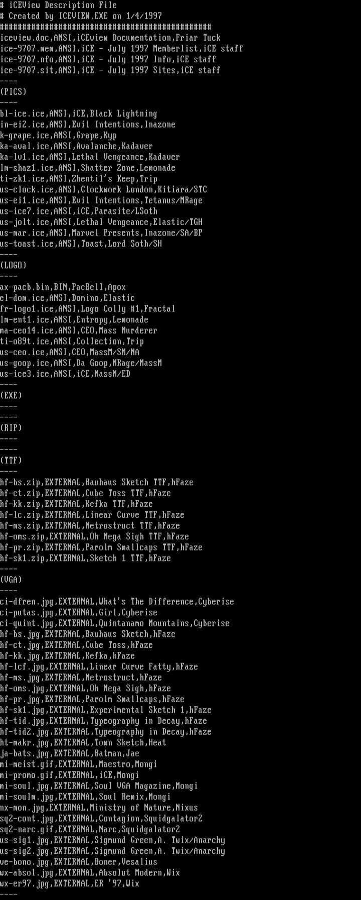 search on file extension such as ANS, ICE, RIP, LIT or DRK
