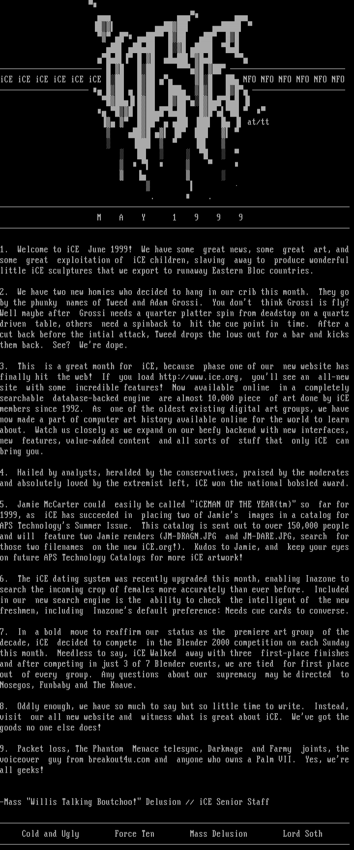 1. Welcome to iCE June 1999! We have some great news, some great art, and