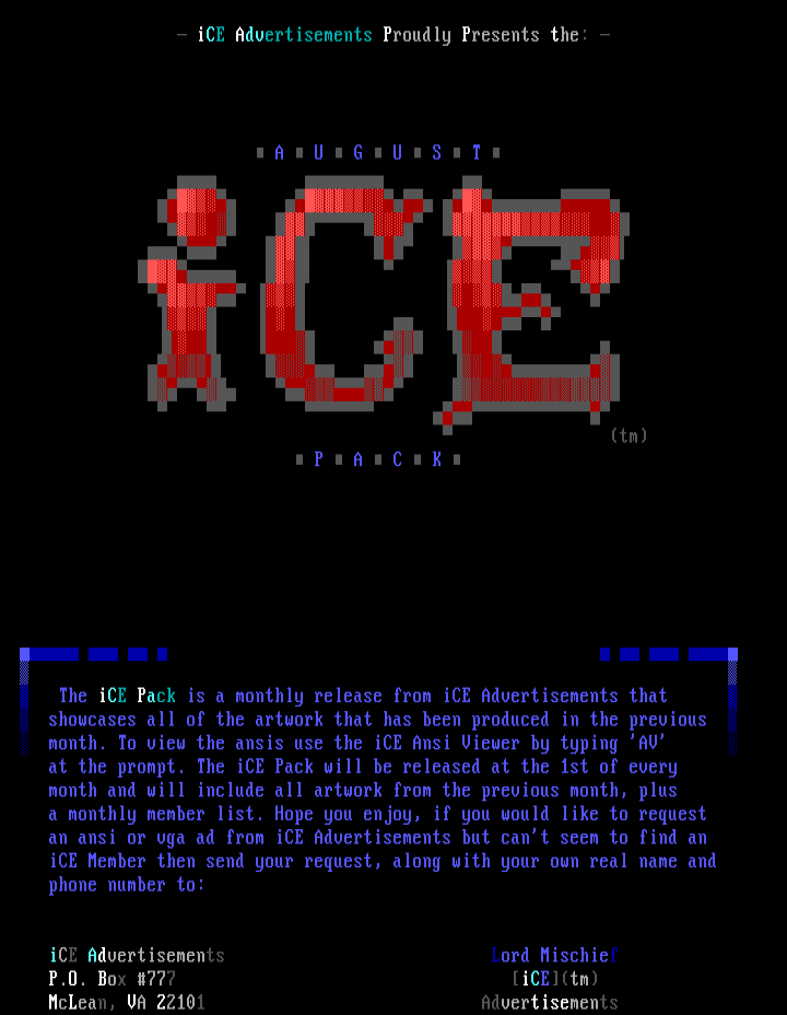 an ansi or vga ad from iCE Advertisements but cant seem to find an