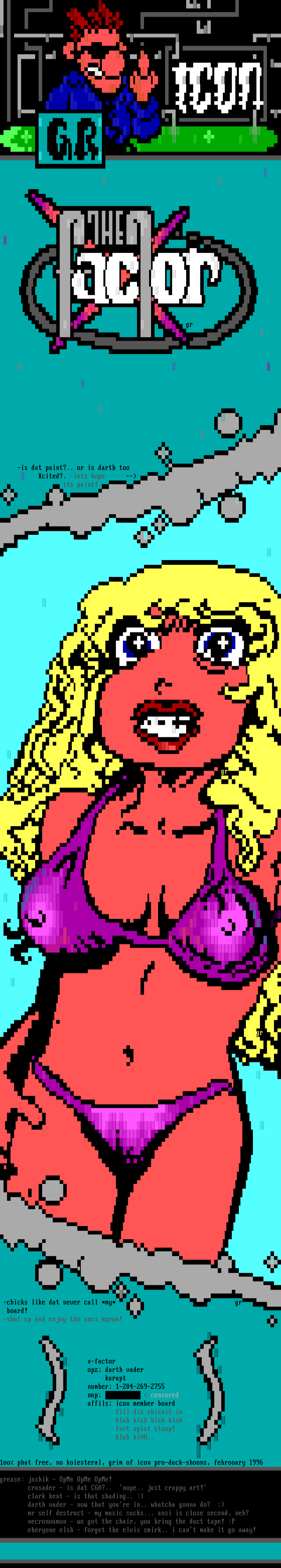 -chicks like dat never call *my* gr board! -shut up and enjoy the ansi moron! x-factor opz darth vader kurupt number 1-204-269-2755 nup -censored affils icon member board fill dis shiznit in blah blah blah blah fart splat sloop!blah blAH.. 1oo phat free, no kolesteral, grim of icon pro-duck-shoons, febrooary 1996grease: jashik - OpMe OpMe OpMe!