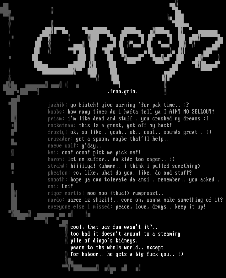 smooth: hope ya can tolerate da ansi.. remember.. you asked..