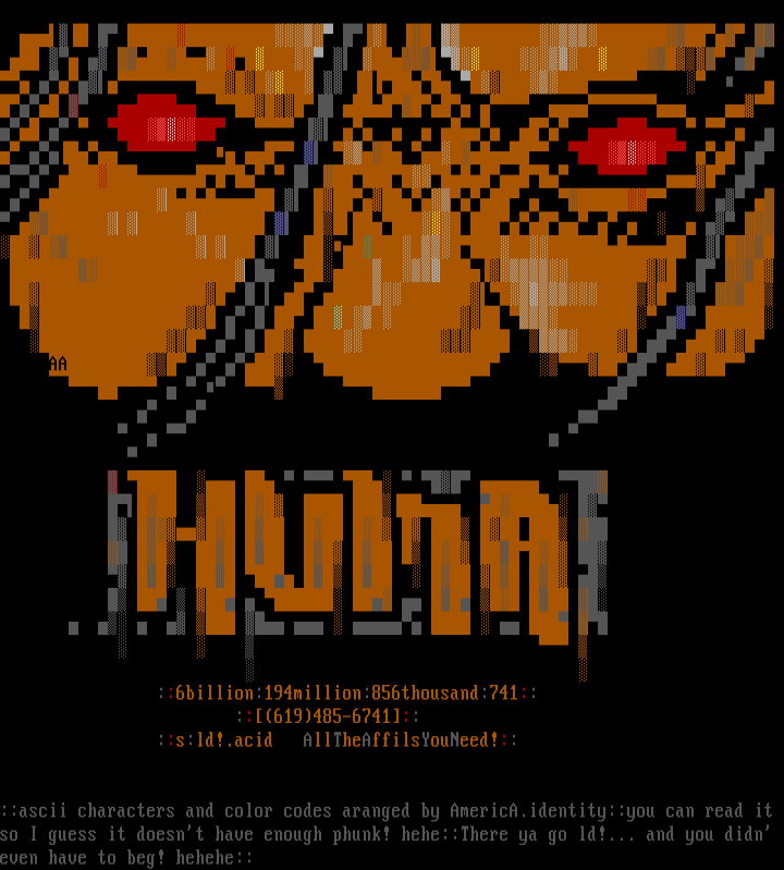 ::ascii characters and color codes aranged by AmericA.identity::you can read it
