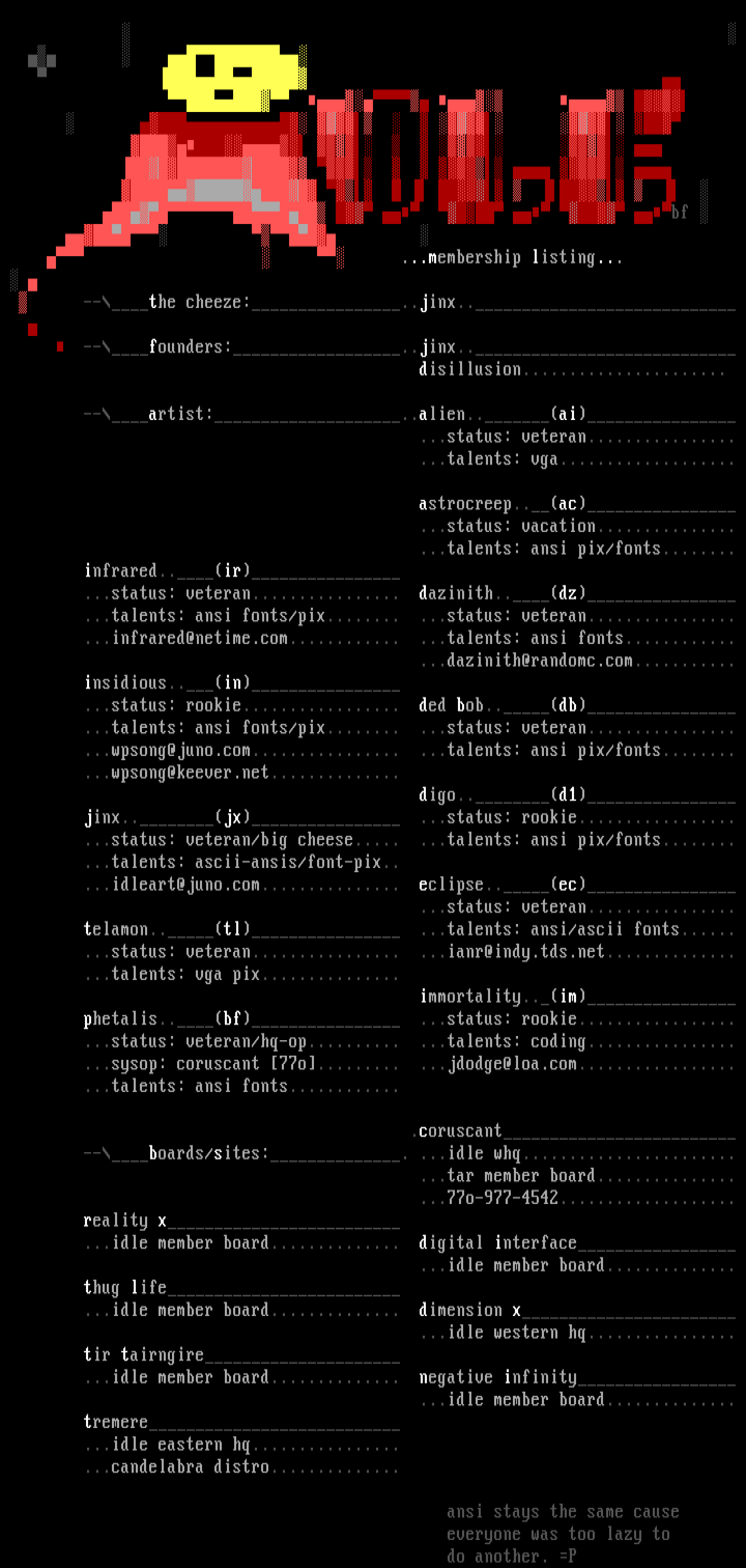 ...status: veteran/big cheese..... ...talents: ansi pix/fonts........