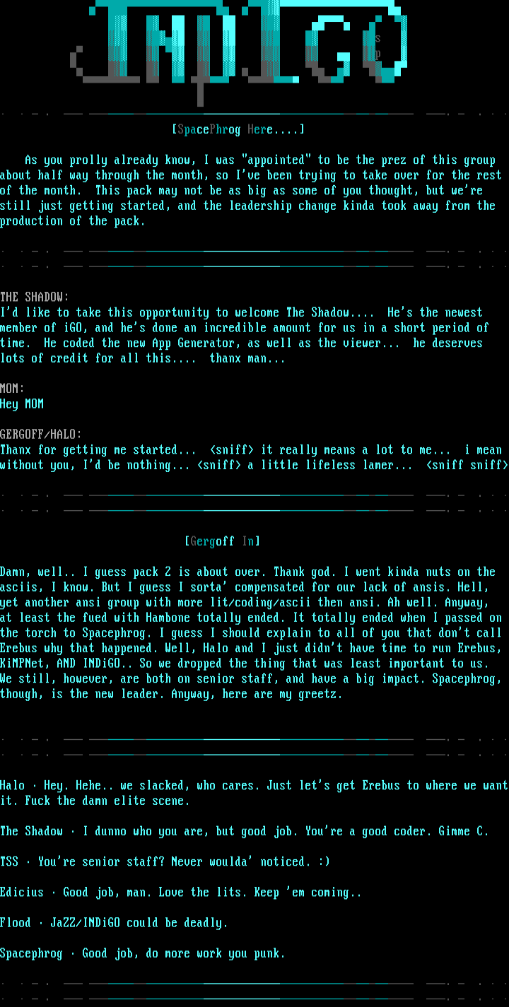 yet another ansi group with more lit/coding/ascii then ansi. Ah well. Anyway,