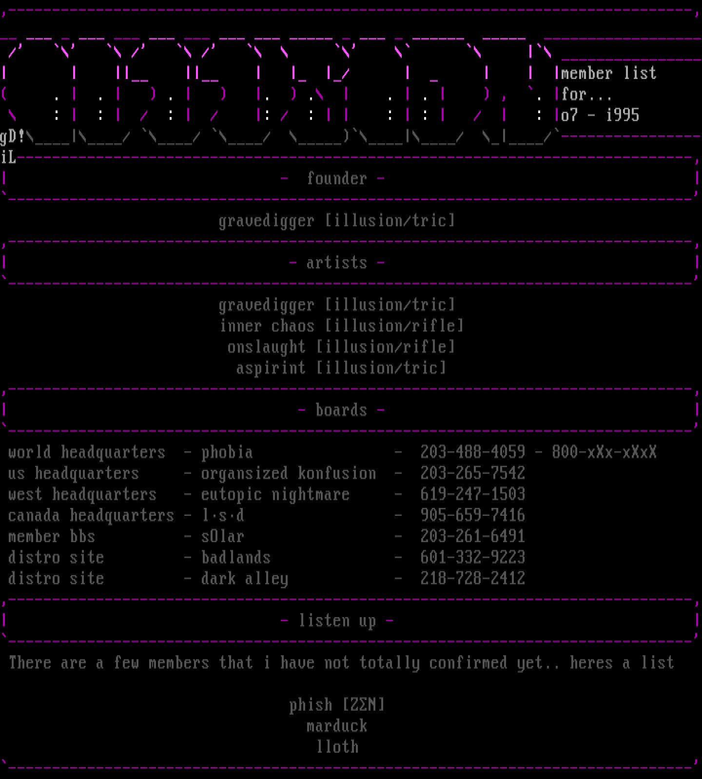 ,------------------------------------------------------------------------------, - listen up - ------------------------------------------------------------------------------ There are a few members that i have not totally confirmed yet.. heres a list