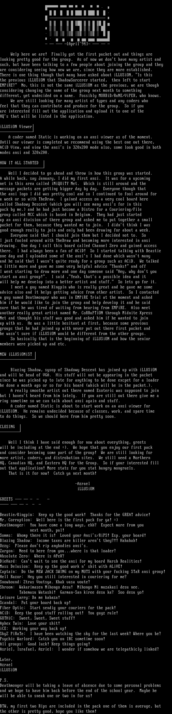 Blazing Shadow, sysop of Shadowy Descent has joined up with iLLUSiON