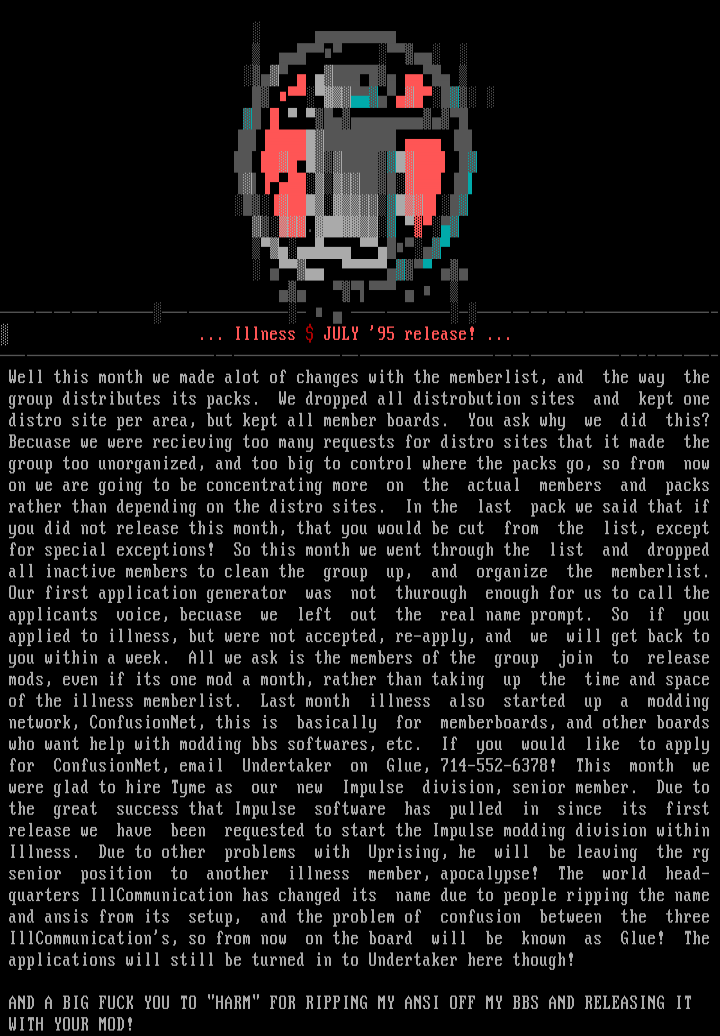 AND A BIG FUCK YOU TO HARM FOR RIPPING MY ANSI OFF MY BBS AND RELEASING IT WITH YOUR MOD!