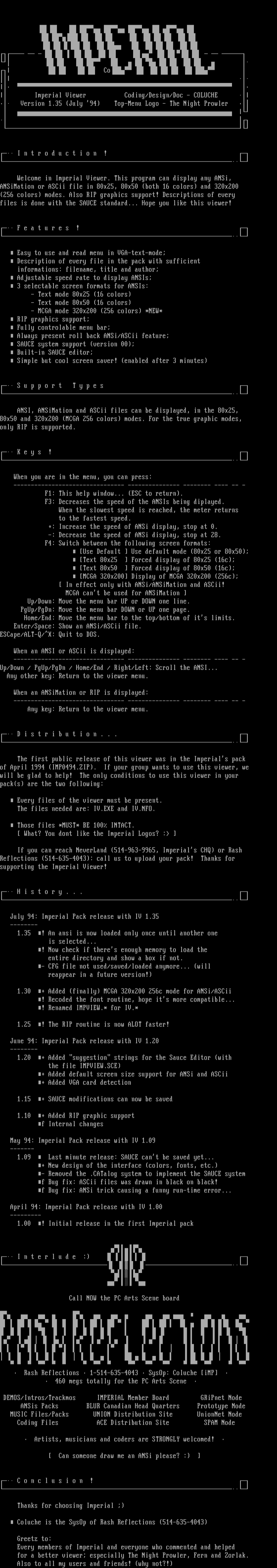 Welcome in Imperial Viewer. This program can display any ANSi,