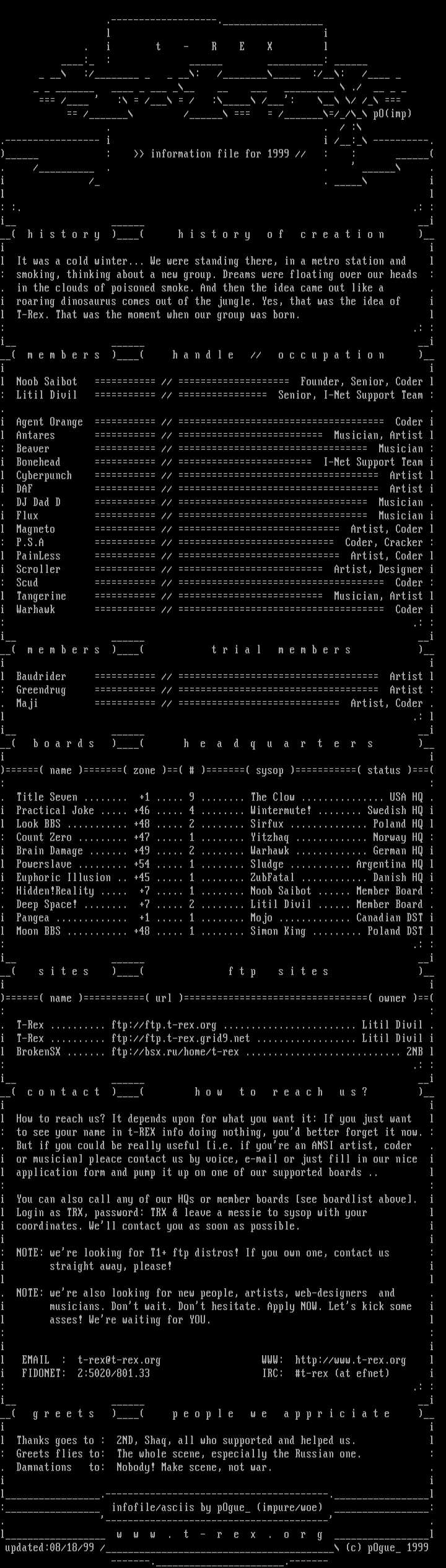 i T-Rex .......... ftp://ftp.t-rex.grid9.net .................. Litil Divil i