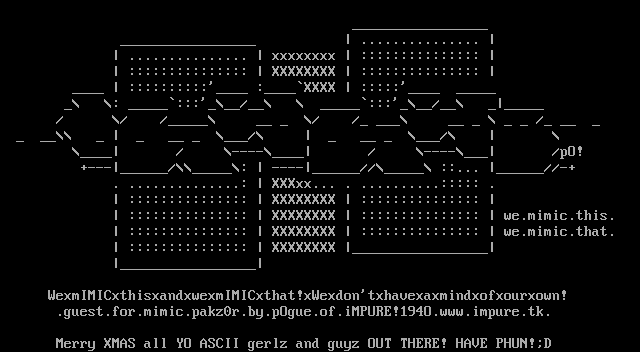 Merry XMAS all YO ASCII gerlz and guyz OUT THERE! HAVE PHUN!D