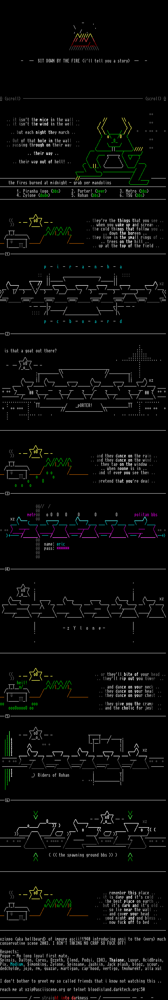 reach me at xzip@asciiscene.org or telnet bloodisland.darktech.org:50