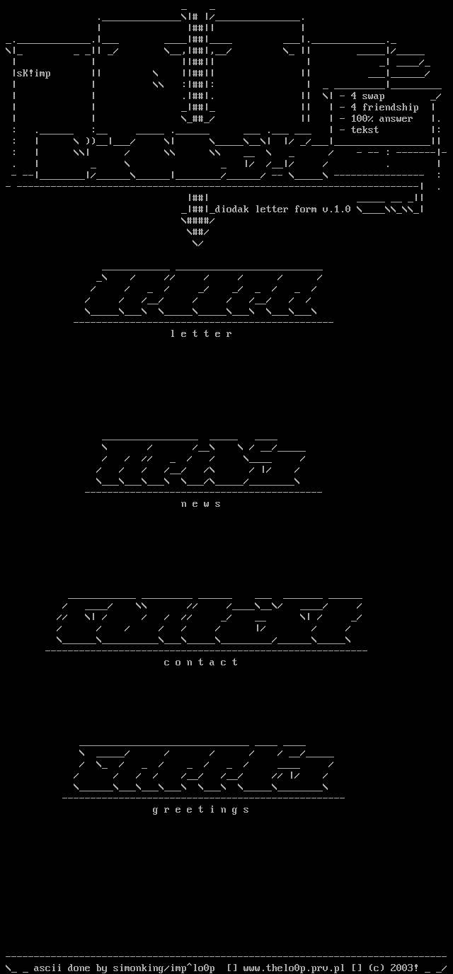 ascii done by simonking/implo0p www.thelo0p.prv.pl c 2003! /