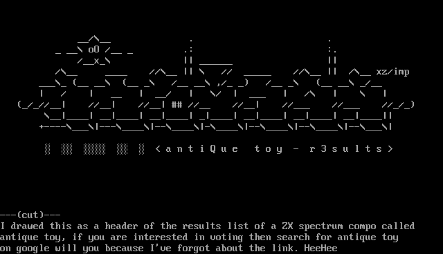 I drawed this as a header of the results list of a ZX spectrum compo called