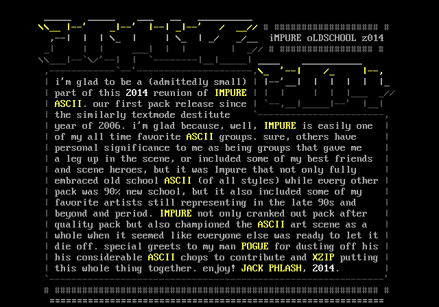 quality pack but also championed the ASCII art scene as a whole when it seemed like everyone else was ready to let it