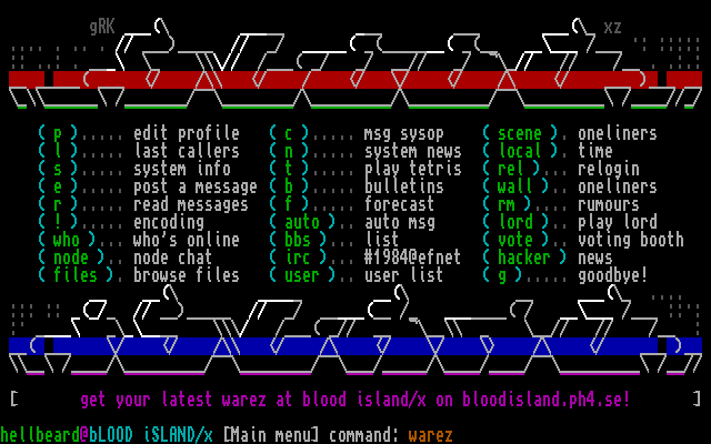 hellbeard@bLOOD iSLAND/x Main menu command: warez