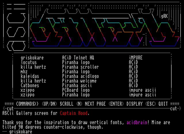 **** COMMANDS UP/DN SCROLL N NEXT PAGE ENTER DISPLAY ESC QUIT ****