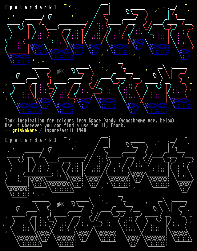 Took inspiration for colours from Space Dandy monochrome ver. below.