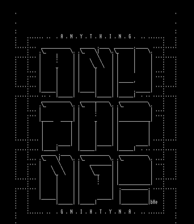 . :...... .. . G . N . I . H . T . Y . N . A . .. ......: .