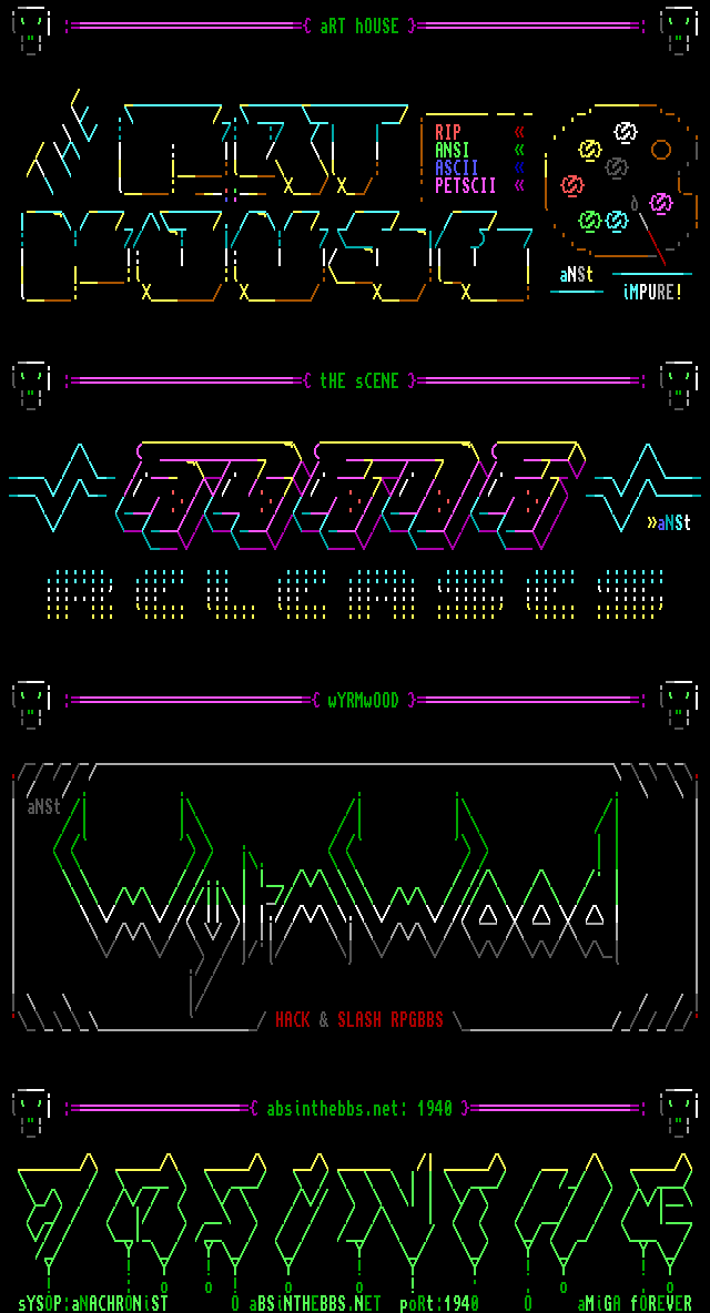 sYSOP:aNACHRONiST O aBSiNTHEBBS.NET poRt:1940 O aMiGA fOREVER