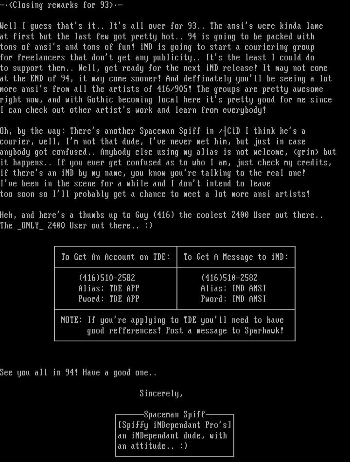 too soon so Ill probably get a chance to meet a lot more ansi artists!