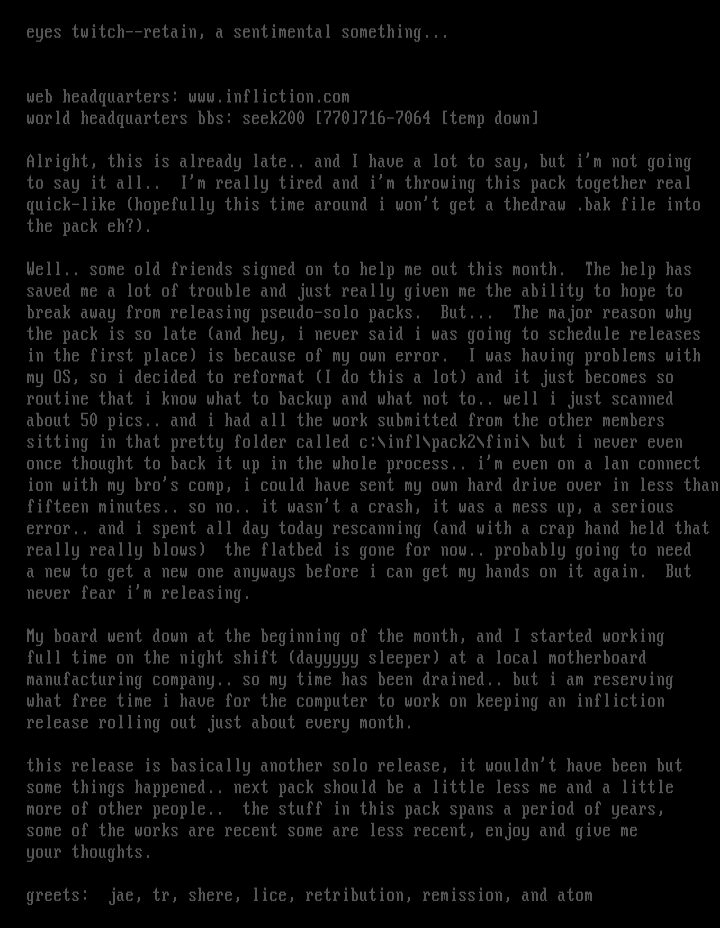 greets: jae, tr, shere, lice, retribution, remission, and atom