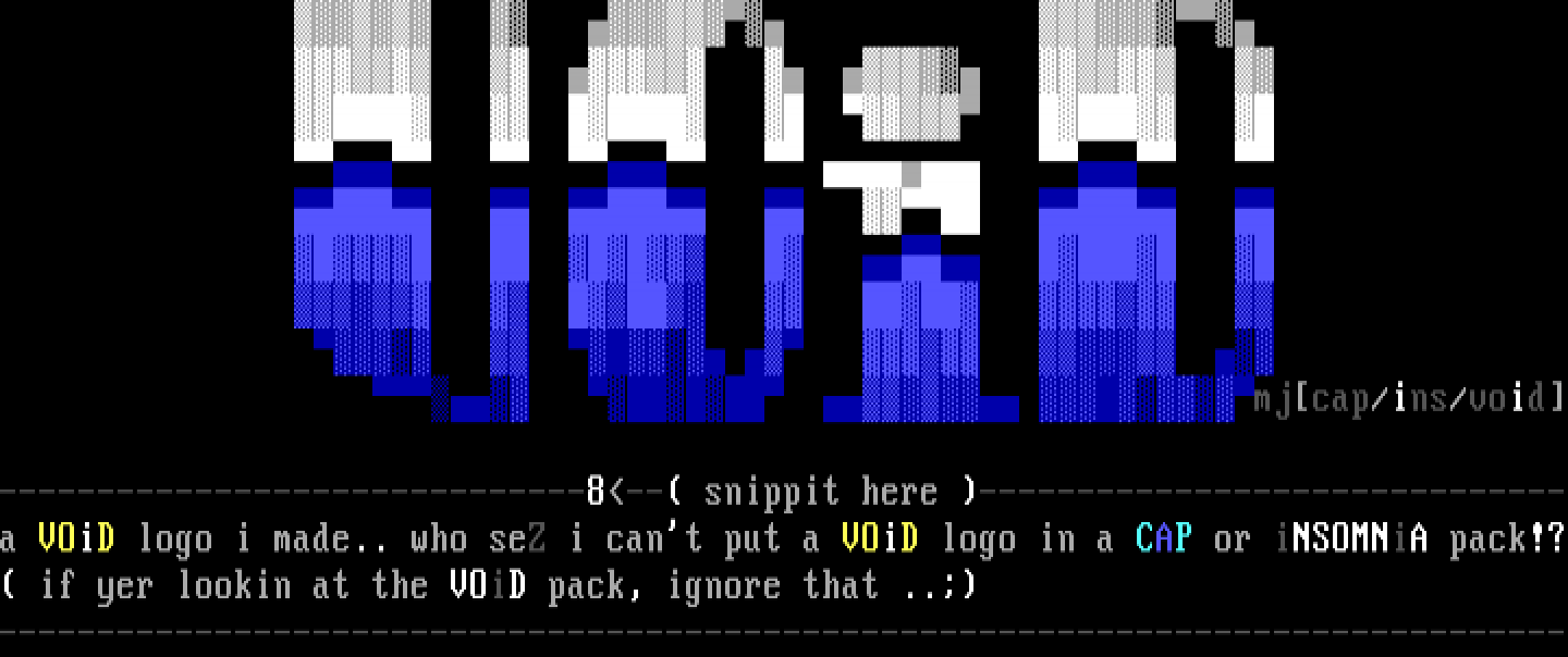 ------------------------------8-- snippit here ------------------------------a VOiD logo i made.. who seZ i cant put a VOiD logo in a CAP or iNSOMNiA pack!? if yer lookin at the VOiD pack, ignore that ..