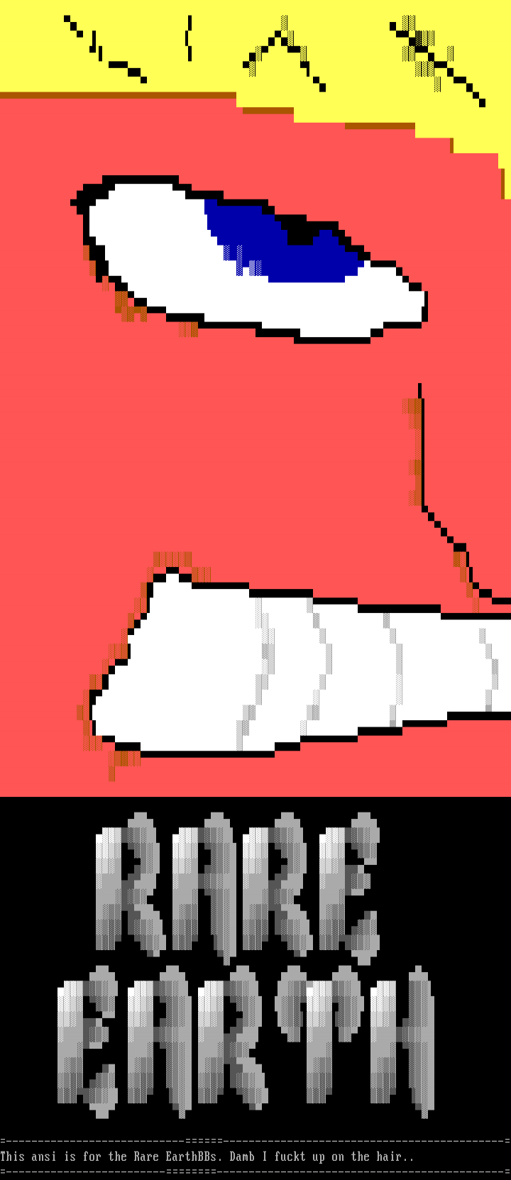 ------------------------------------------------------------------------This ansi is for the Rare EarthBBs. Damb I fuckt up on the hair..