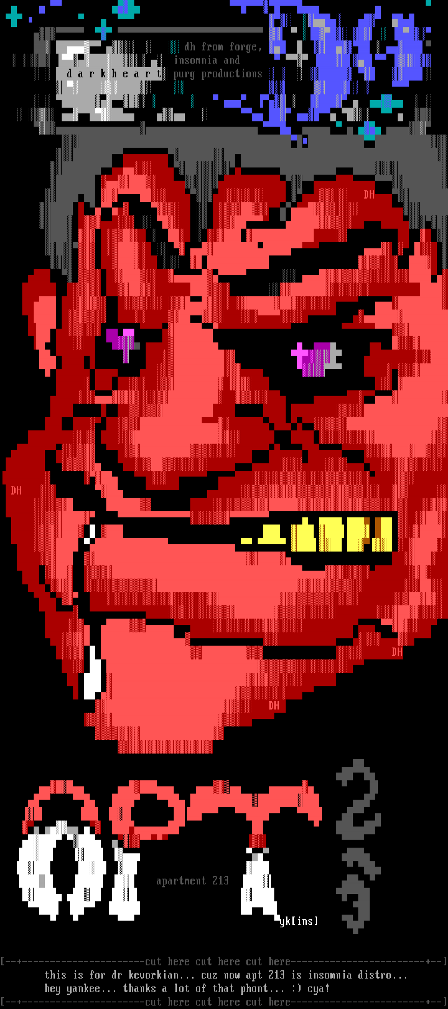 --+----------------------cut here cut here cut here------------------------+-- this is for dr kevorkian... cuz now apt 213 is insomnia distro...