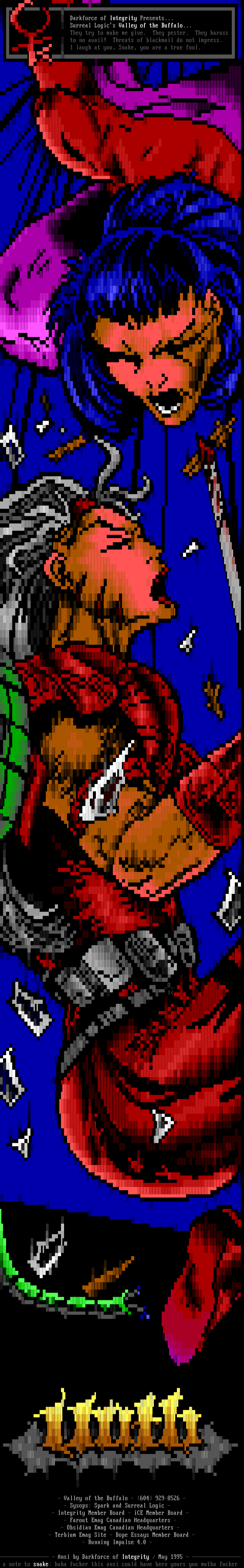 Darkforce of Integrity Presents... Surreal Logics Valley of the Buffalo... They try to make me give. They pester. They harass to no avail! Threats of blackmail do not impress. I laugh at you, Snake, you are a true fool.