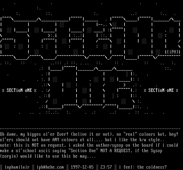 make a olschool ascii saying Section One NOT A REQUEST, if the Sysop