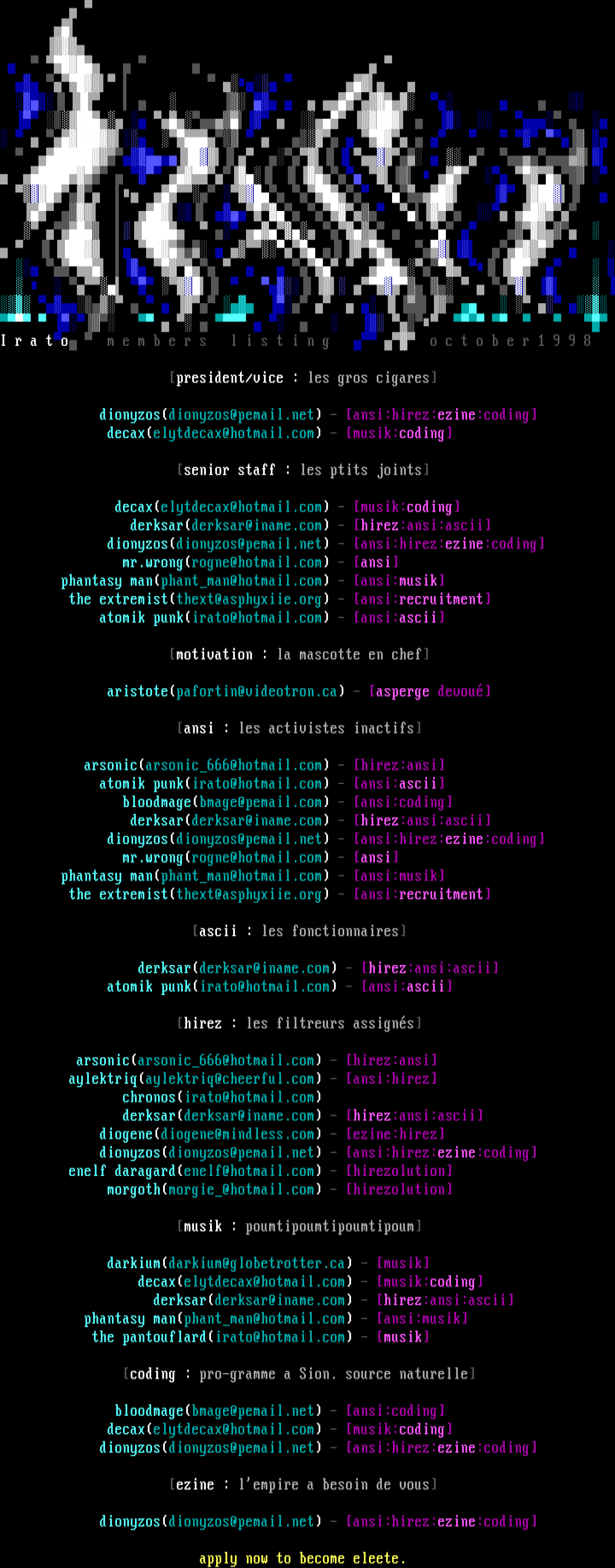 dionyzosdionyzos@pemail.net - ansi:hirez:ezine:coding
