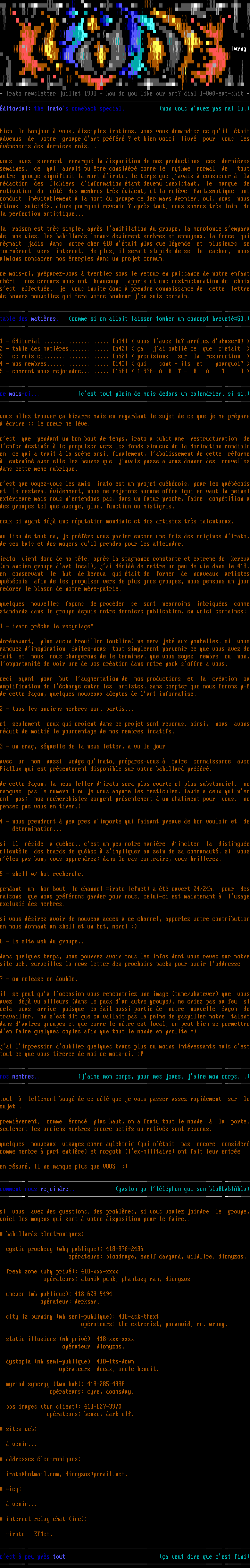 - irato newsletter juillet 1998 - how do you like our art? dial 1-800-eat-shit - ditorial: the iratos comeback special. non vous navez pas mal lu.