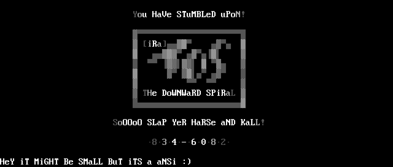 YouHaVeSTuMBLeDuPoN!iRa THeDoWNWaRDSPiRaLSoOOoOSLaPYeRHaRSeaNDKaLL!834-6082HeYiTMiGHTBeSMaLLBuTiTSaaNSi: