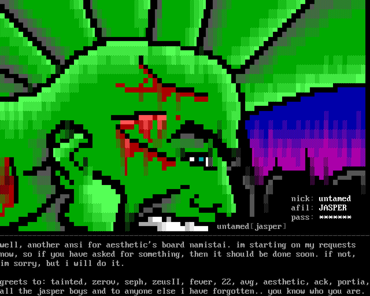 greets to: tainted, zerov, seph, zeusII, fever, 22, avg, aesthetic, ack, portia,all the jasper boys and to anyone else i have forgotten.. you know who you are.