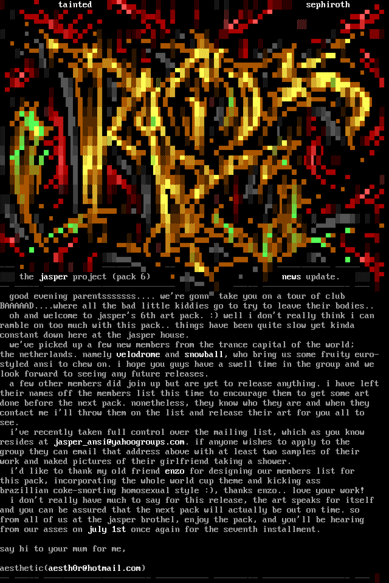 styled ansi to chew on. i hope you guys have a swell time in the group and we
