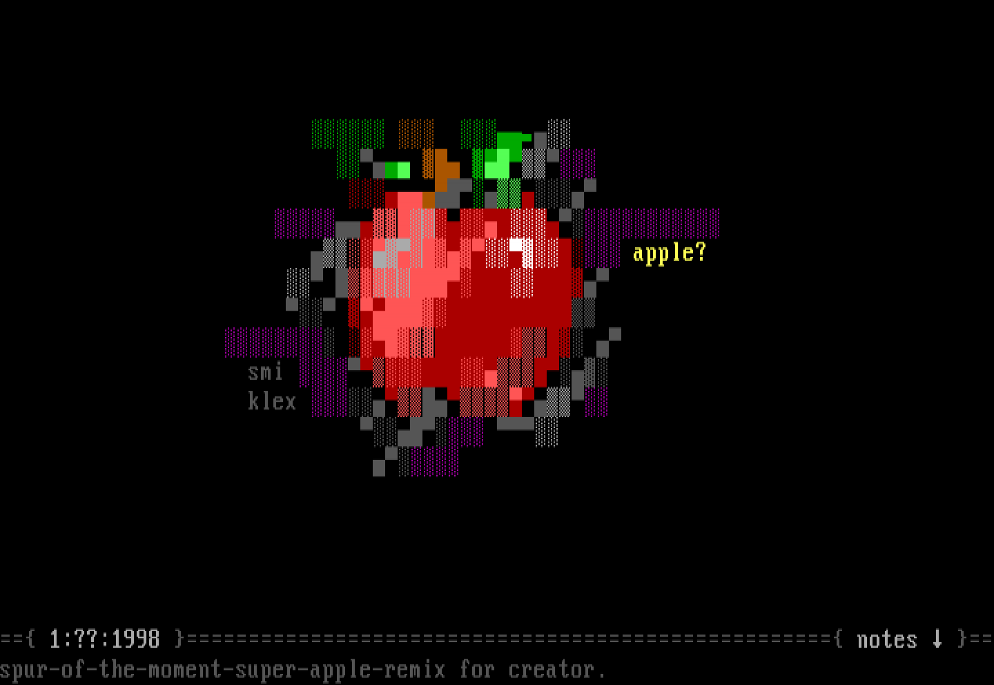 1:??:1998 notes spur-of-the-moment-super-apple-remix for creator.