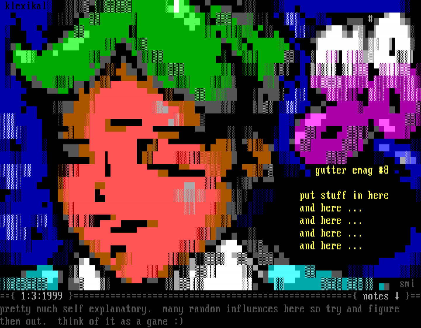 gutter emag 8 put stuff in here and here ... and here ... and here ... and here ... smi 1:3:1999 notes pretty much self explanatory. many random influences here so try and figure