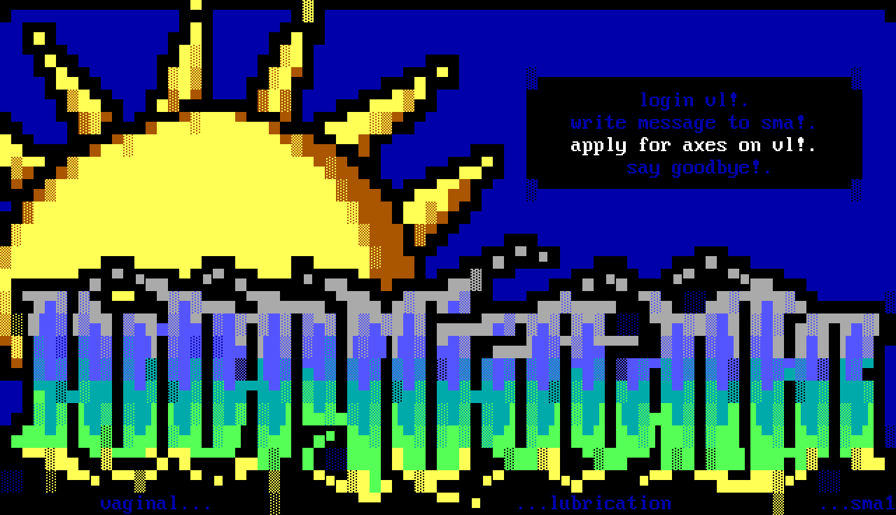 login vl!. write message to sma!. apply for axes on vl!. say goodbye!.