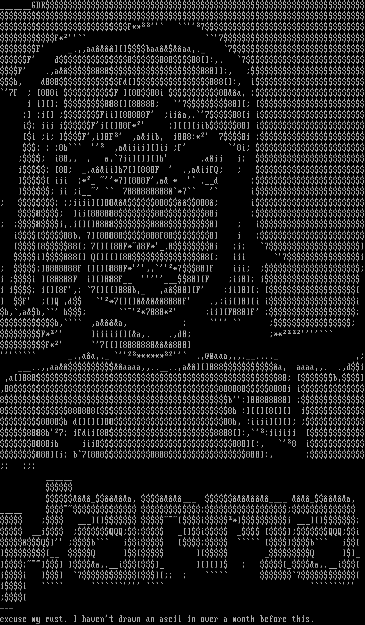 excuse my rust. I havent drawn an ascii in over a month before this.