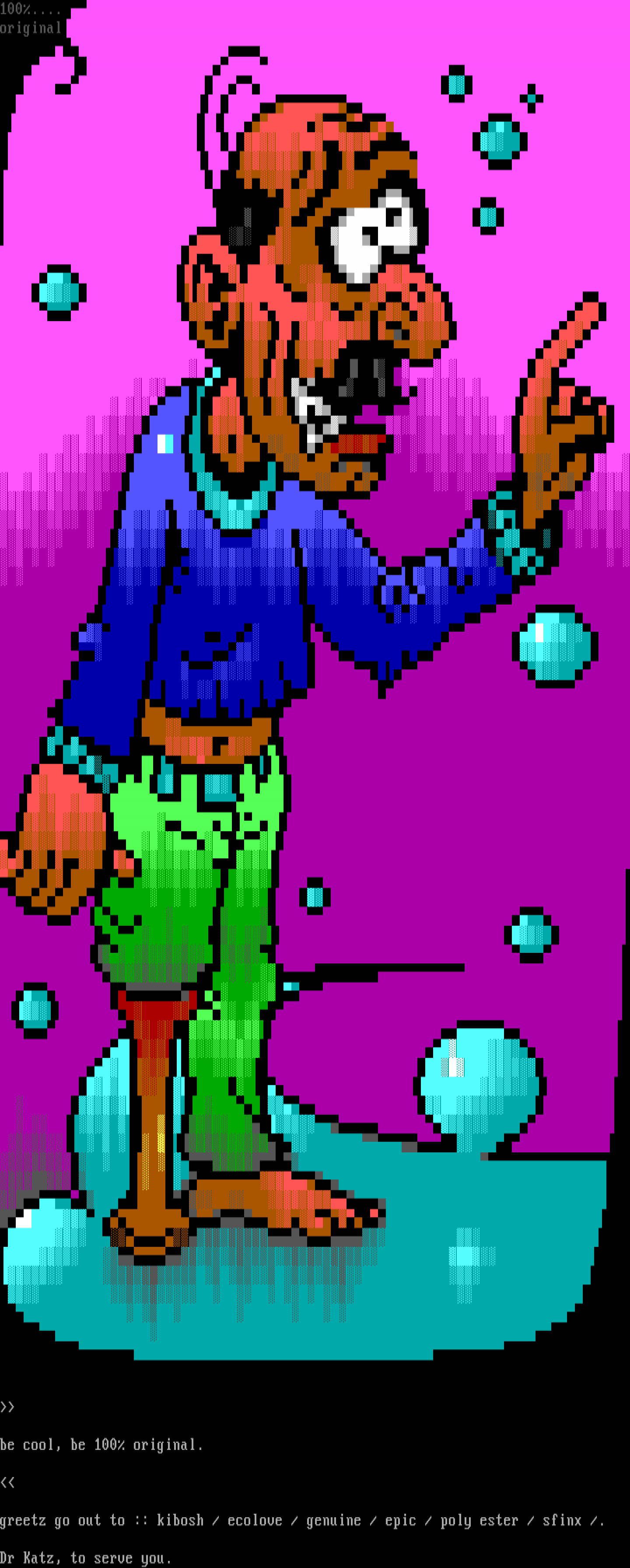 greetz go out to :: kibosh / ecolove / genuine / epic / poly ester / sfinx /.