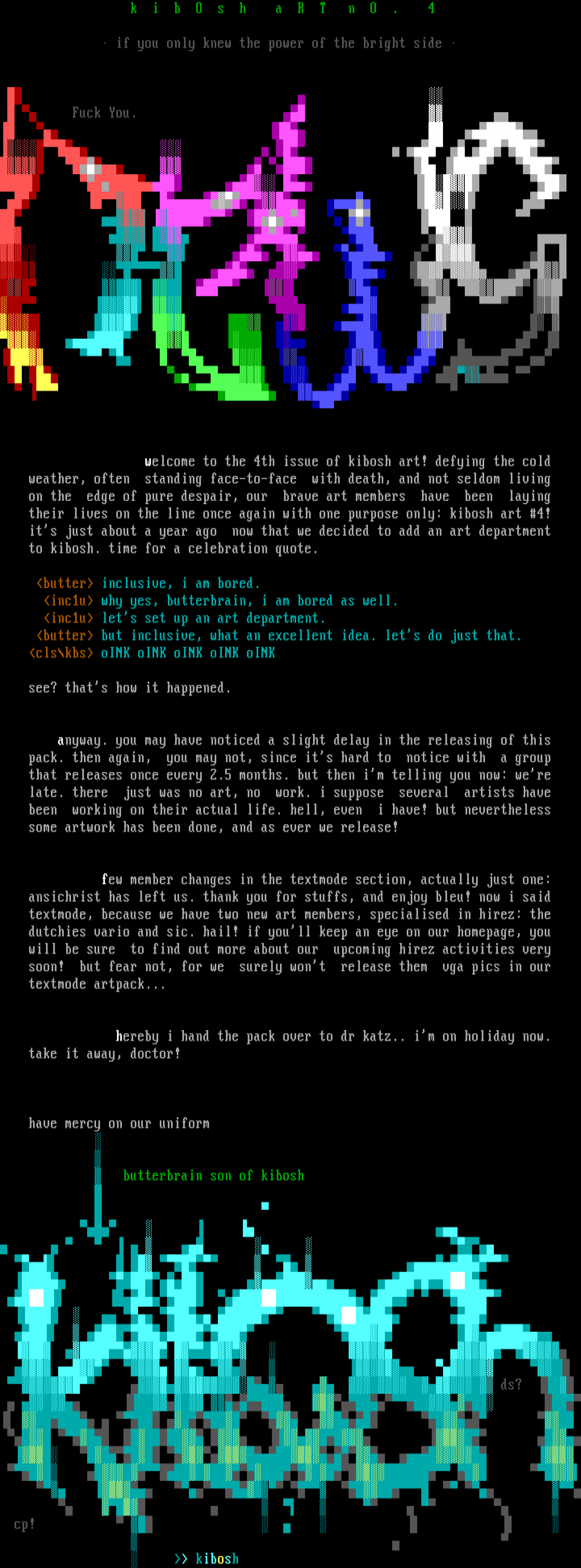 welcome to the 4th issue of kibosh art! def