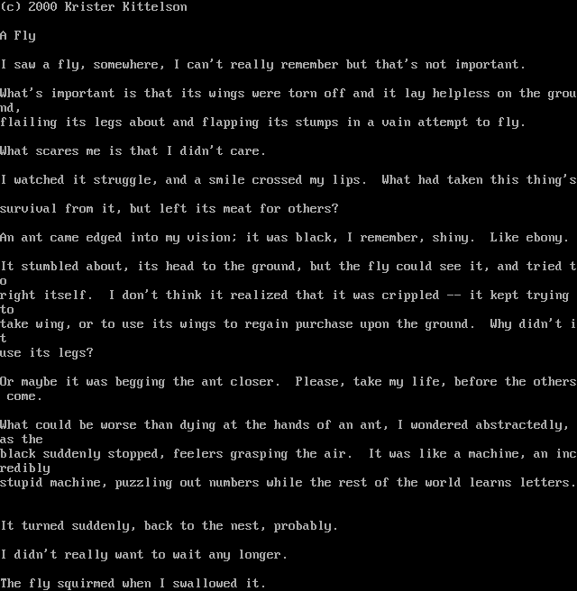 I saw a fly, somewhere, I cant really remember but thats not important.