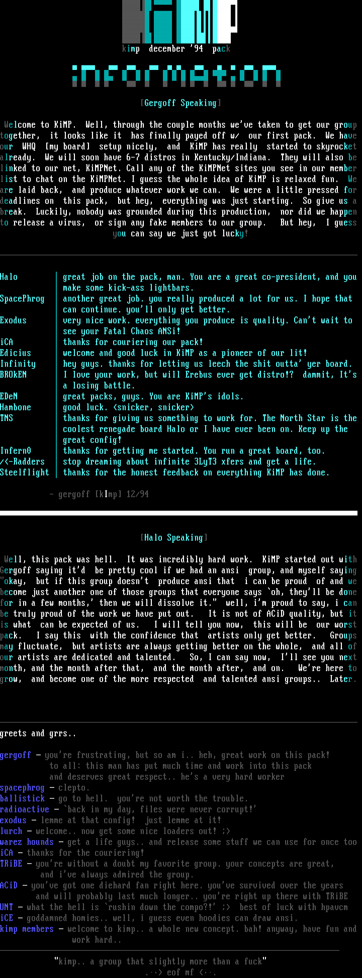 grow, and become one of the more respected and talented ansi groups.. Later.