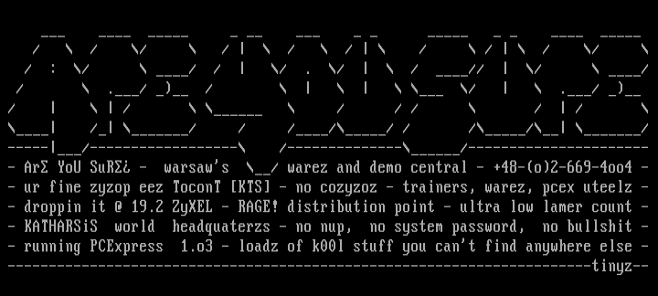 - Ar YoU SuR - warsaws / warez and demo central - +48-o2-669-4oo4 -