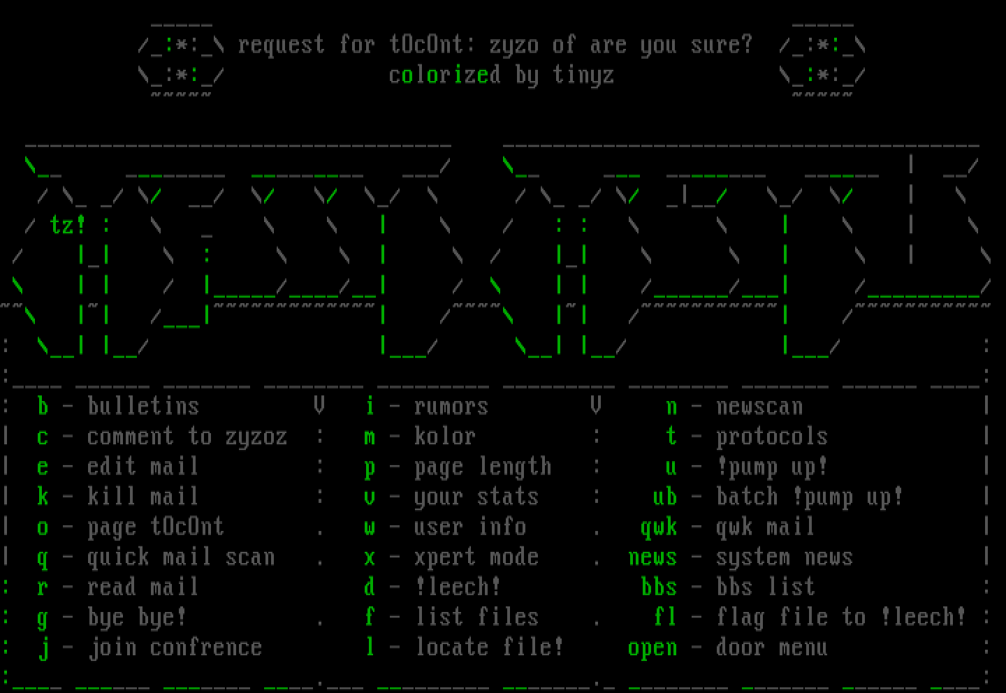 o - page tOcOnt . w - user info . qwk - qwk mail