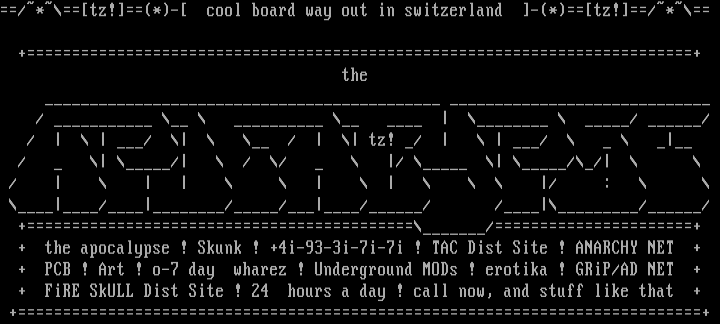 + the apocalypse ! Skunk ! +4i-93-3i-7i-7i ! TAC Dist Site ! ANARCHY NET +