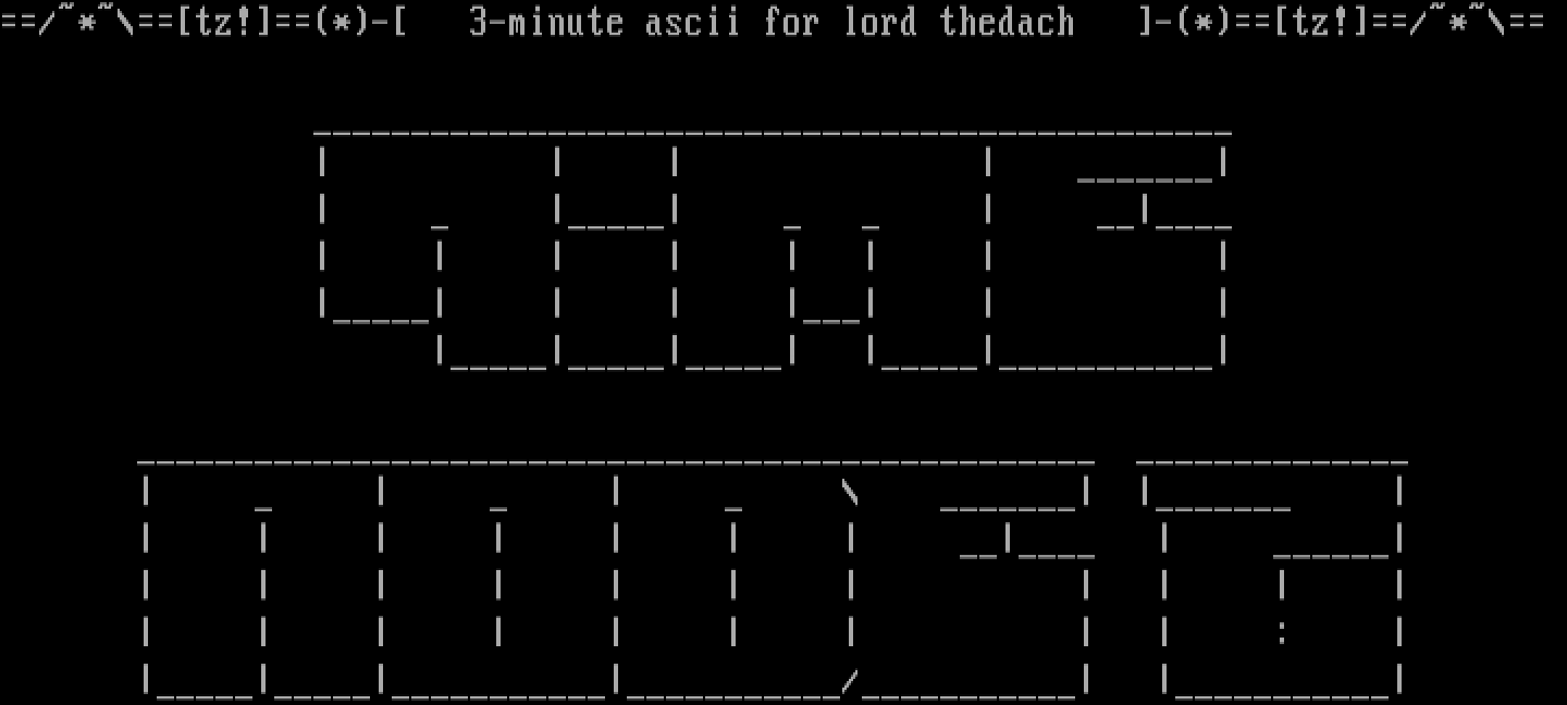 /*tz!*- 3-minute ascii for lord thedach -*tz!/*
