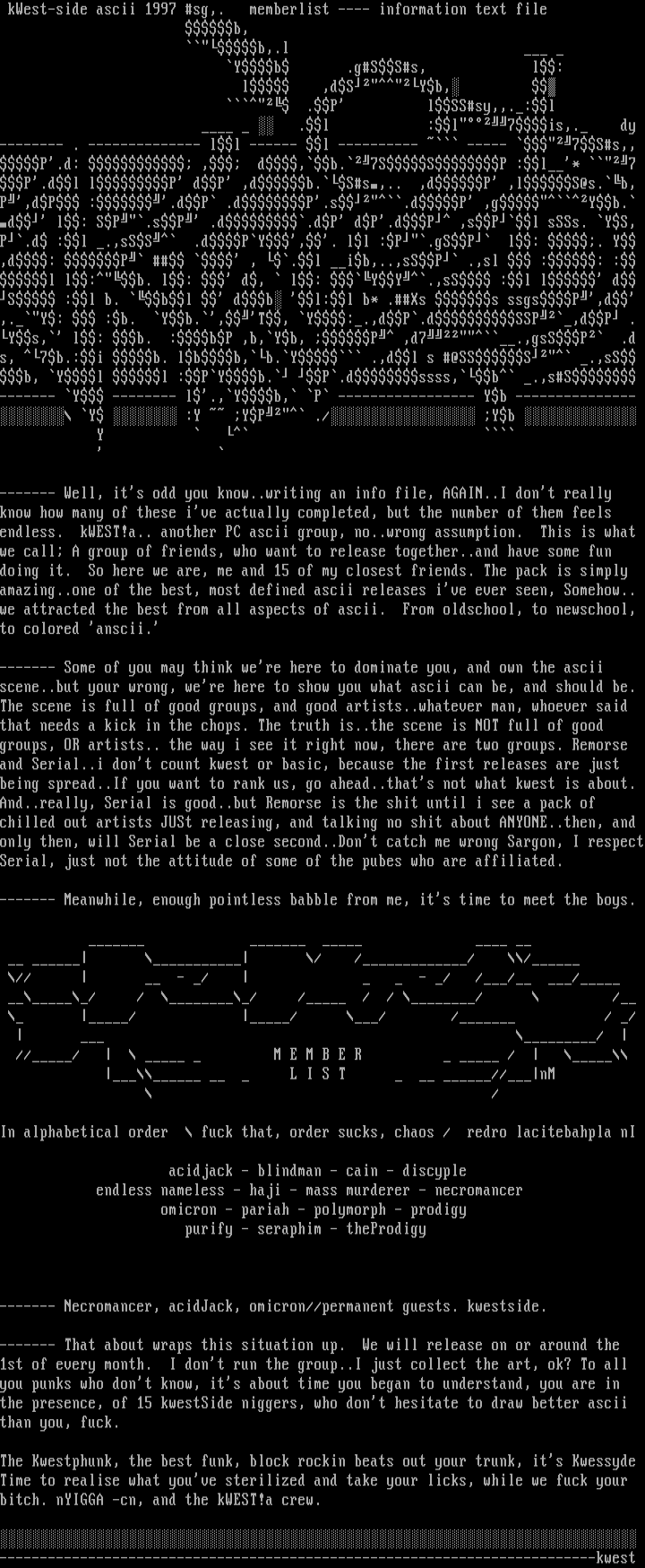 endless. kWEST!a.. another PC ascii group, no..wrong assumption. This is what